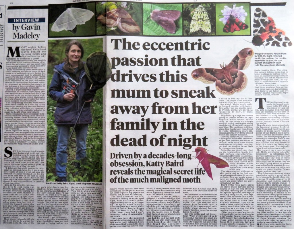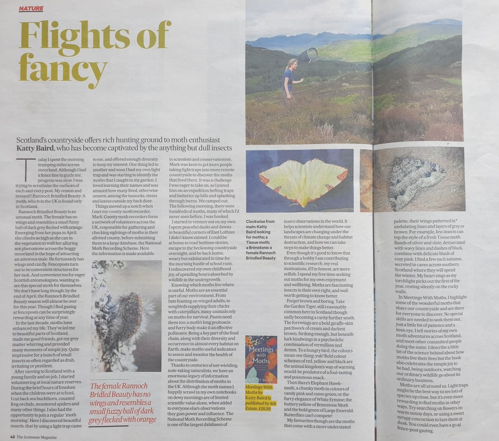 Herald Scotland book review covering Meetings with Moths alongside another new book Wild Air, by James Lockheart. “Baird is a captivating guide to the surprising world of this astonishingly diverse creature – and indeed, that of the people who pursue them” https://www.heraldscotland.com/news/23492241.wild-air-james-macdonald-lockhart-meetings-moths/