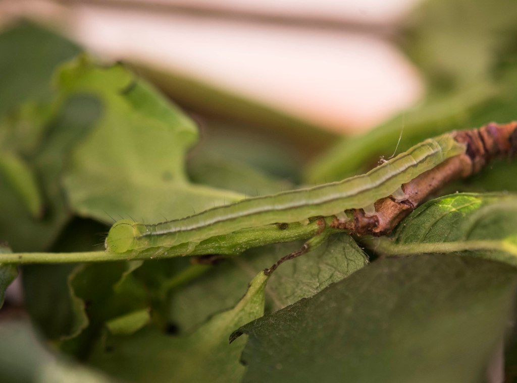 Just over a week later the eggs hatched. Some caterpillars started feeding on leaves immediately, others spun a silk thread and adventured to alternative leaves. Within the confines of the cage their destination was limited, though I did find some on the back of the sofa: Herald Houdinis.